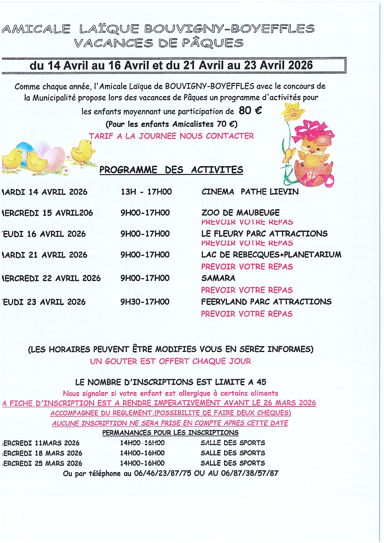 Horaires :