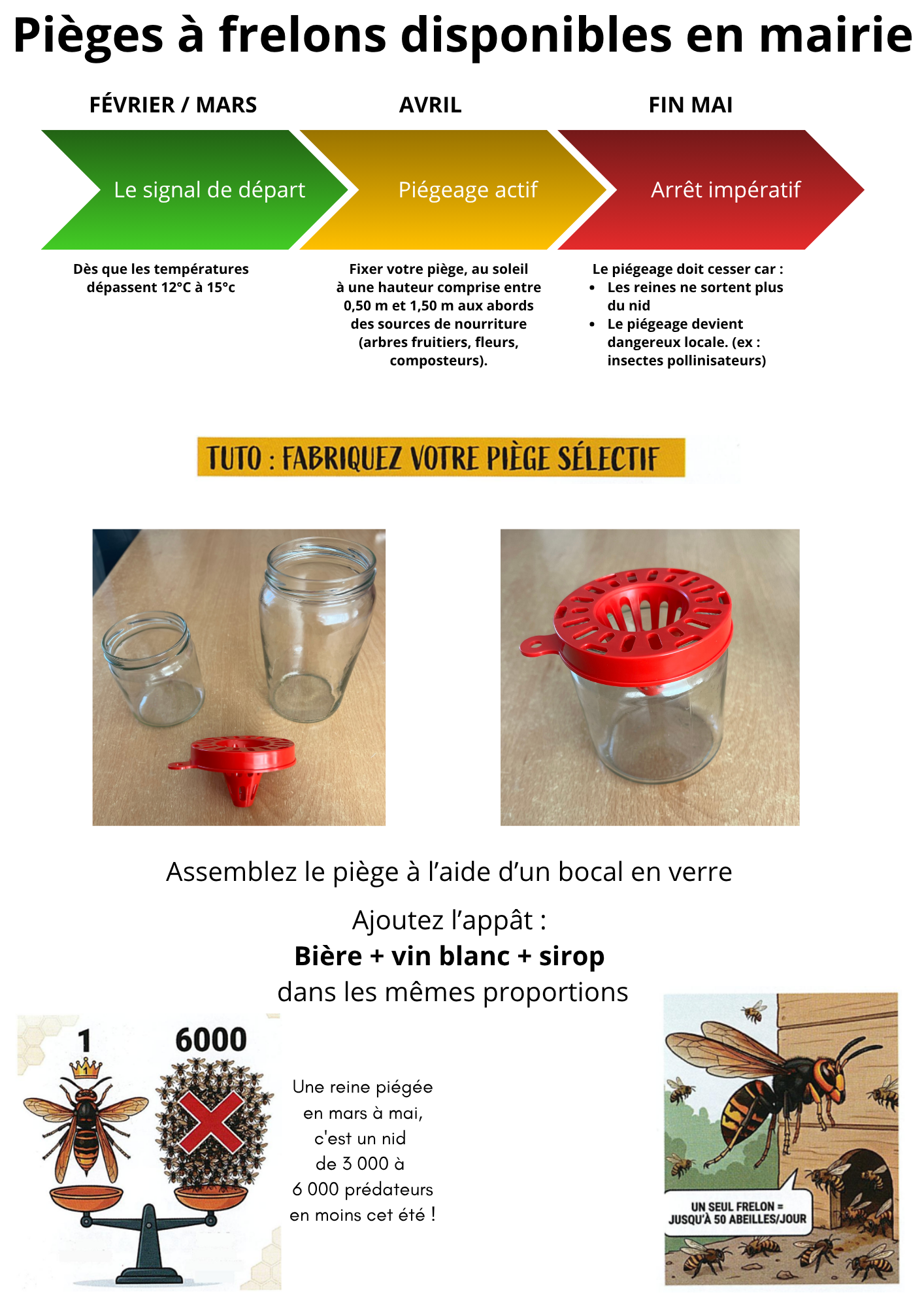 Les pièges à frelons sont mis à disposition gratuitement en mairie, dans la limite des stocks disponibles.